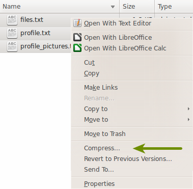 You can also place all files into a compressed file, a .zip file, and upload that to Mahara. This method allows you to upload multiple files from different folders on your computer at once. You can create a zip file from any number of files that you have selected in your document management program by making a right mouse click and selecting Compress… (or something similar).