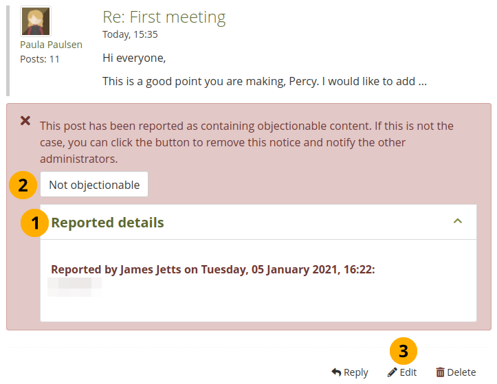 If you are a group administrator, you see the Edit button for making changes to the forum settings.