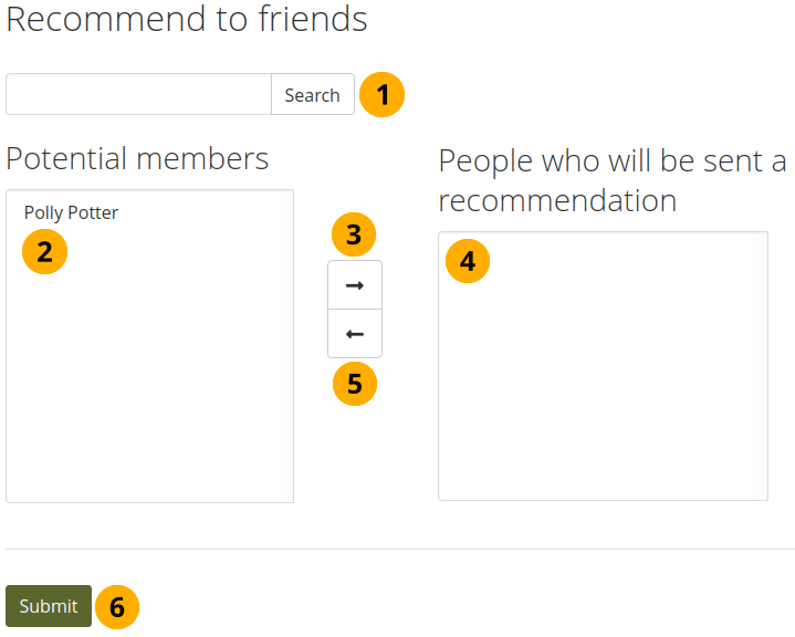 Add the people to the list People who will be sent a recommendation by clicking the right-arrow button .