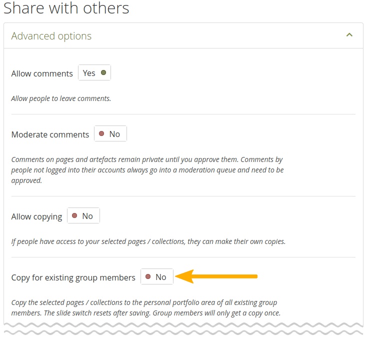 Assignment tasks: Say 『Yes』 for this option if you want learners to be able to choose certain plan tasks as activities and copy them into a plan in their personal portfolio area.