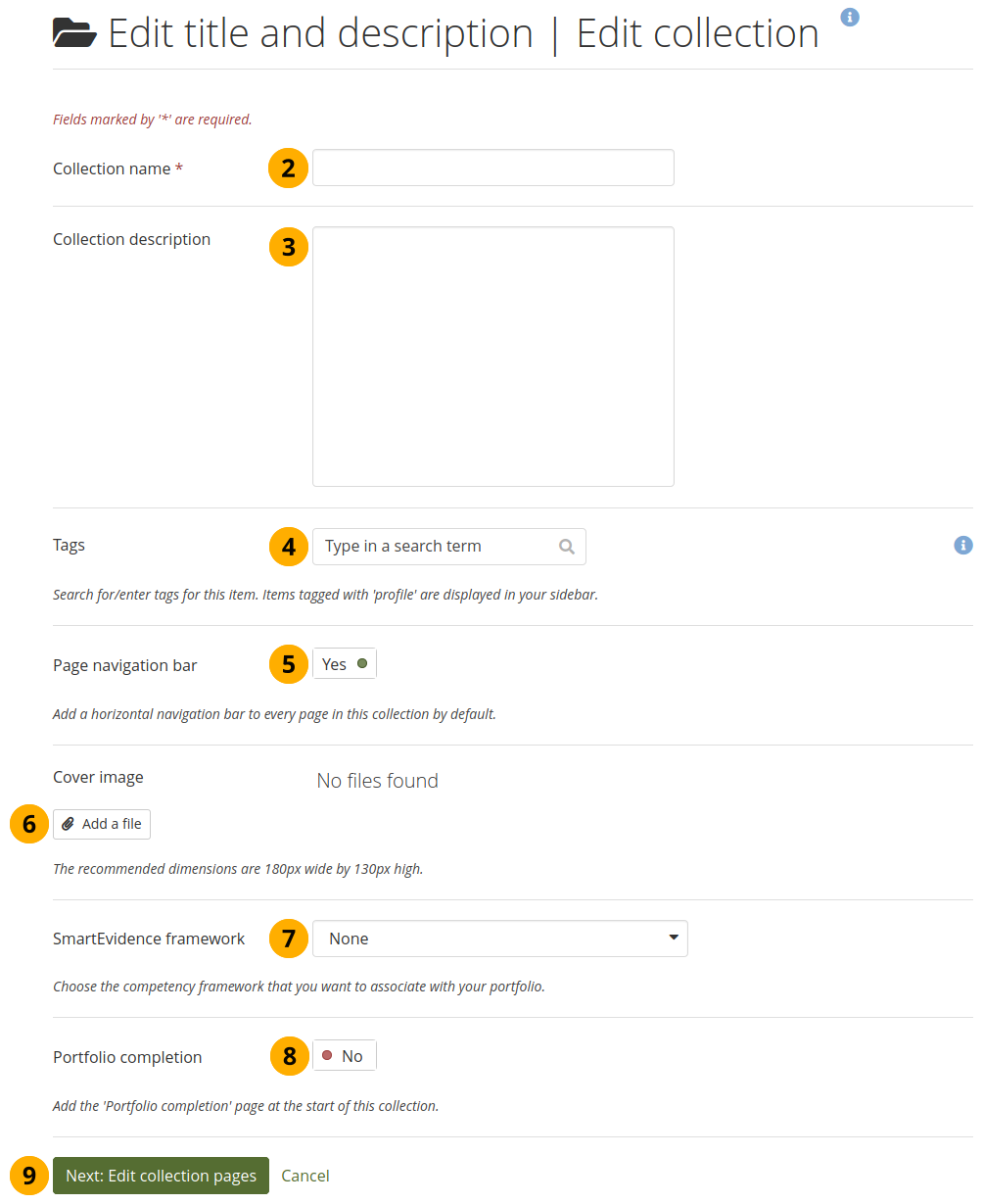 Click the Next: Edit collection pages button or click Cancel if you want to abort adding your collection.