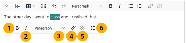 Click the Bullet list icon to turn the paragraph into a bulleted list item.