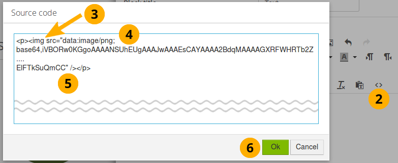 Insert a base64 image via the HTML editor in the visual editor¶