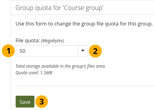 You can specify a default group file quota in Administration menu → Extensions → Plugin administration → Plugin type: artefact file. This allows you to limit the file space that each group can take up. Here you can update the file quota for just one group.