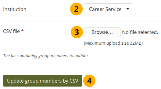 Both site and institution administrators can add and update group members by CSV file.