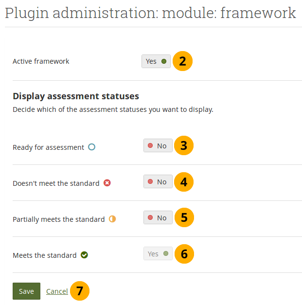 In the SmartEvidence framework settings you can decide whether a framework is active and which assessment statuses you want to display.