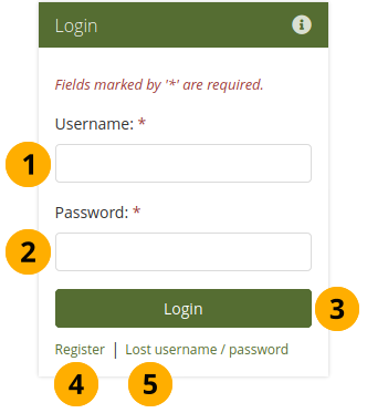 Lost username / password: If you do not remember your username or password to your account, click this link to be taken to a page where you can request an email with your details. It will contain your username and a link to change your password.