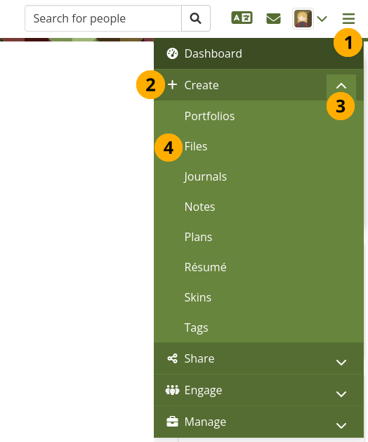 Create: Create your electronic portfolio in a flexible personal learning environment. This takes you to Main menu → Create → Portfolios.