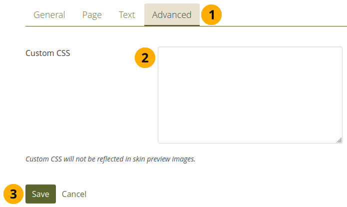 Custom CSS: If you know how to change CSS, you can change other styles for your skin here and overwrite further elements on a page.
