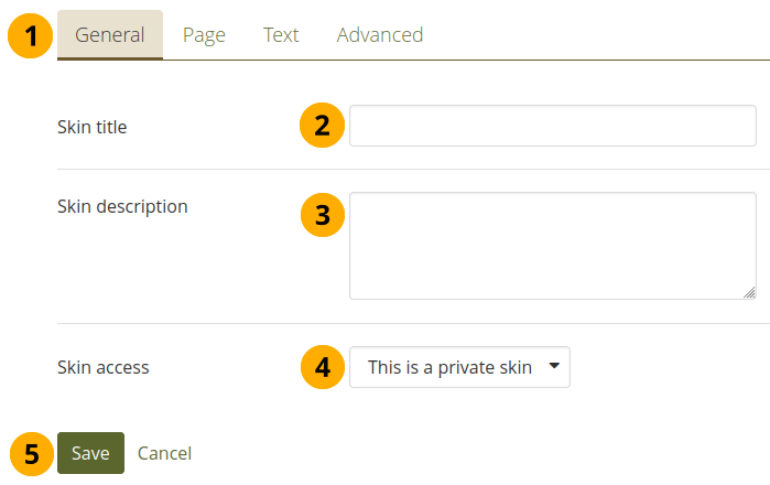 Click the Save button to accept your changes or click Cancel to abort your changes. You are taken back to the skins overview page.